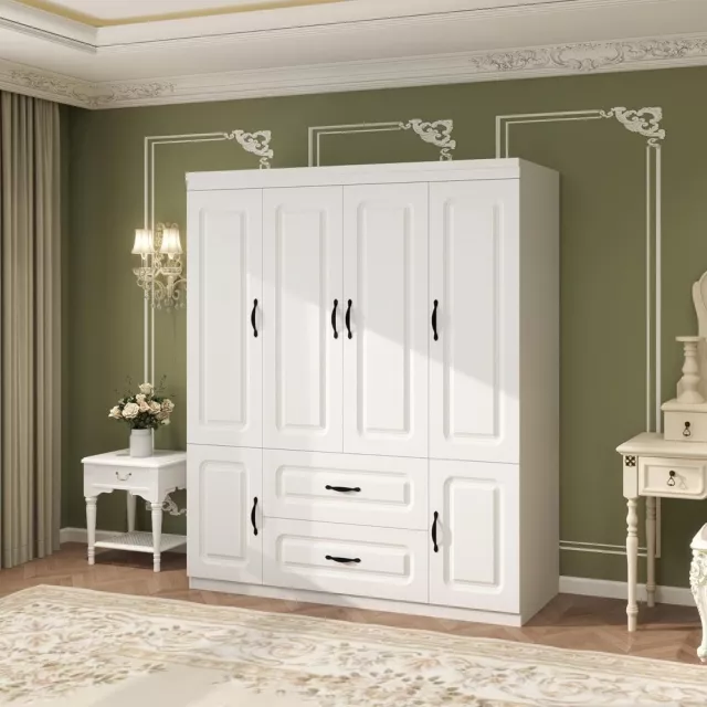 White 4-Door Large Wardrobe Closet with Drawers and Shelves – Modern Armoire