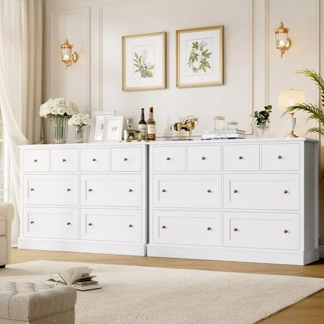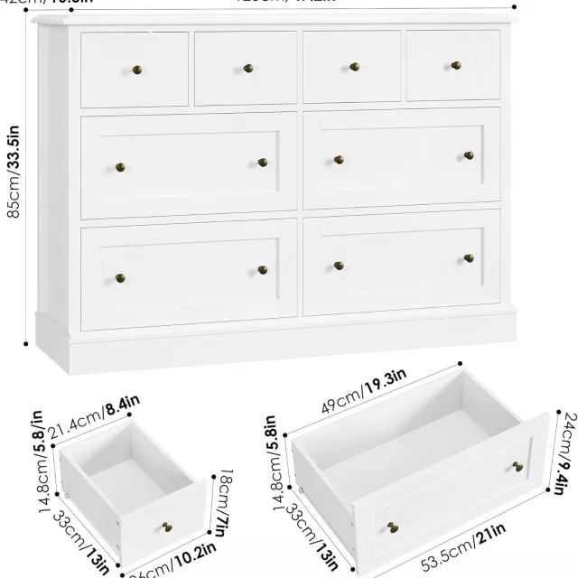 This dresser isn’t just about good looks – it’s about making your home more functional. If you’ve been looking for a way to organize your space while still maintaining a cozy, stylish atmosphere, this white dresser is the answer. The spacious 8 drawers provide ample room for a variety of items, and the deeper drawers are perfect for those larger pieces that typically don’t fit in standard storage units.