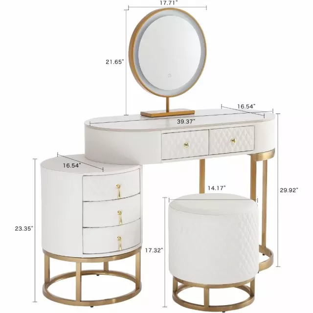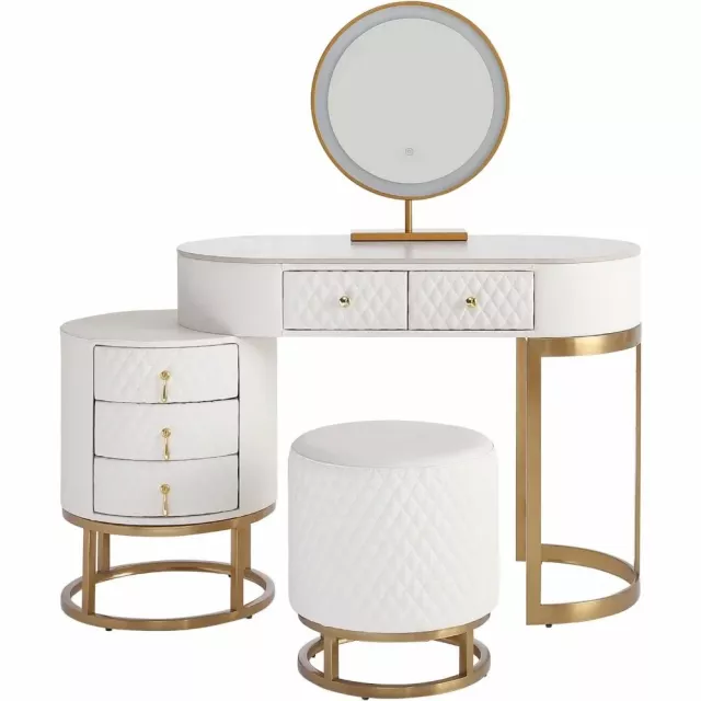 Say goodbye to clutter and dim lighting. Say hello to beauty, comfort, and organization all in one stunning piece. Add this White Faux Leather Vanity Desk Set to your space and turn everyday moments into something extraordinary.