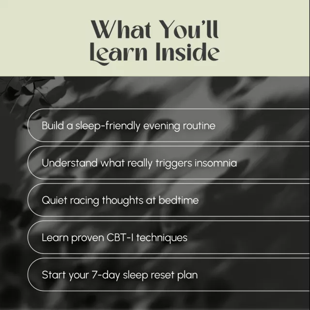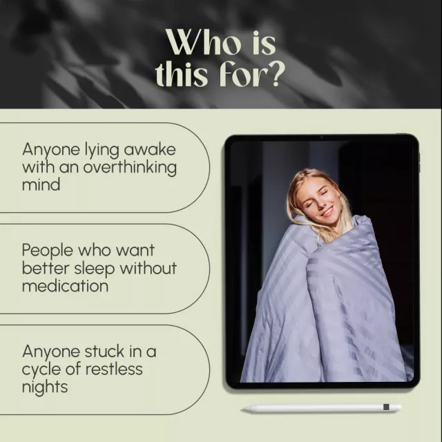 • Chapter 4: Beyond the Bedroom – Learn how diet, movement, and lifestyle affect sleep. Includes a 7-day sleep reset plan and guidance on when to seek professional help.