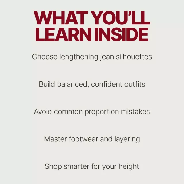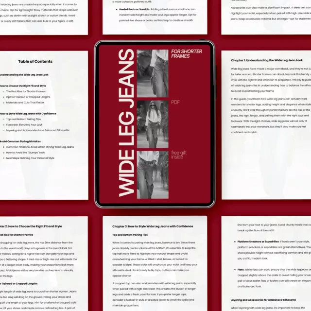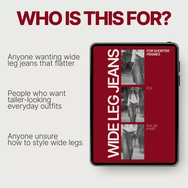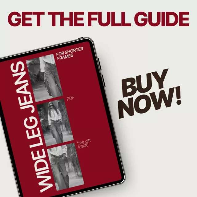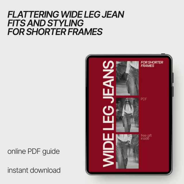 This downloadable guide walks you through every essential detail of styling wide leg jeans for a shorter frame, including: