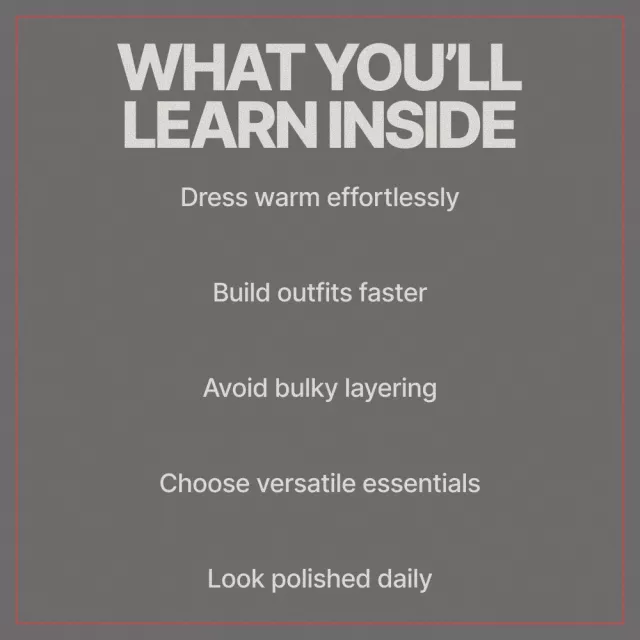 Unlike trend-heavy style guides, Winter Casual Done Right focuses on mindset, practicality, and repeatability. It teaches you how to dress for casual winter days using realistic examples, thoughtful layering, and timeless pieces you can rely on season after season.