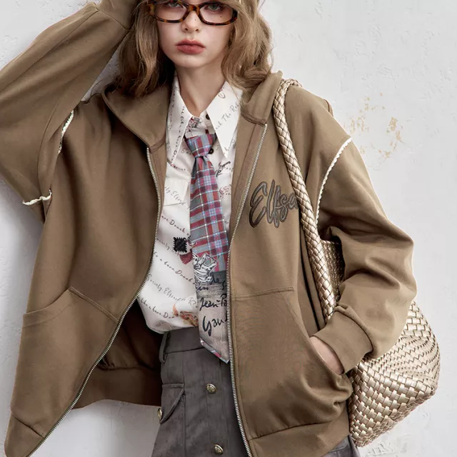 Winter Casual Embroidered Zip-Up Hoodie for Women