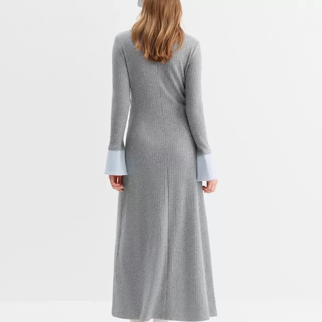 This dress is made for women who want to feel polished, confident, and comfortable all day long. The soft knit fabric has a slight stretch, allowing easy movement while maintaining a smooth, structured look. The round neckline and full-length sleeves give it a refined, winter-ready feel, making it perfect for both professional and casual settings. The mid-calf length adds sophistication, whether you’re wearing it with boots or heels.