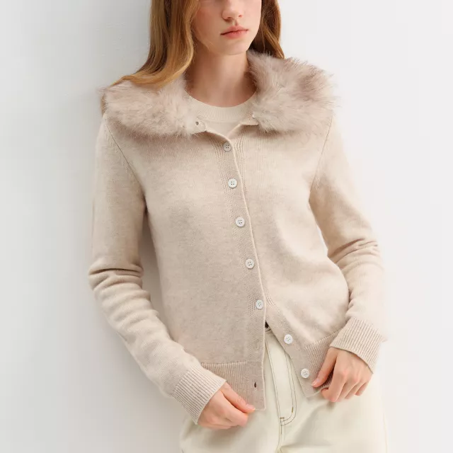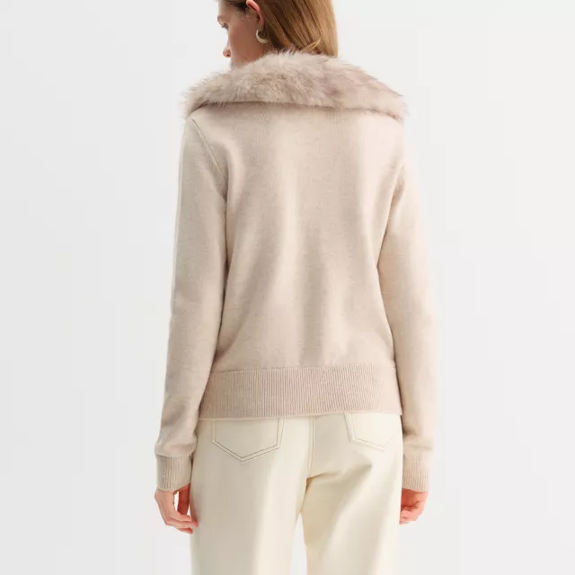 Winter Cozy Faux Fur Collar Knit Cardigan for Women