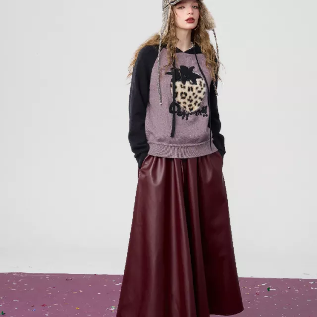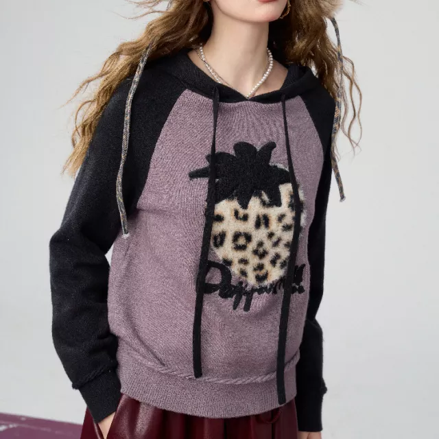 What makes this sweater special is its blend of comfort and creativity. The playful fruit pattern pairs unexpectedly with a wild print, giving you a statement piece that remains easy to wear. Its knitted construction keeps you warm during chilly days, while the hood adds a layer of practicality. Whether you’re heading out for coffee, strolling through the city, or relaxing at home, this sweater brings warmth, charm, and personality to every moment.