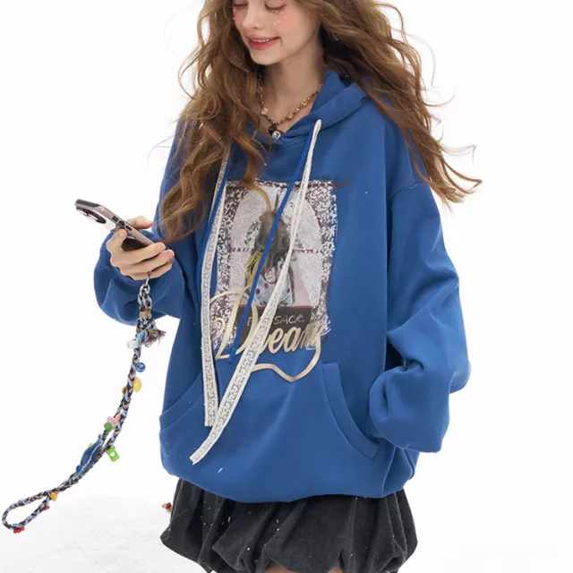 Winter Loose Y2K Graphic Hooded Pullover for Women