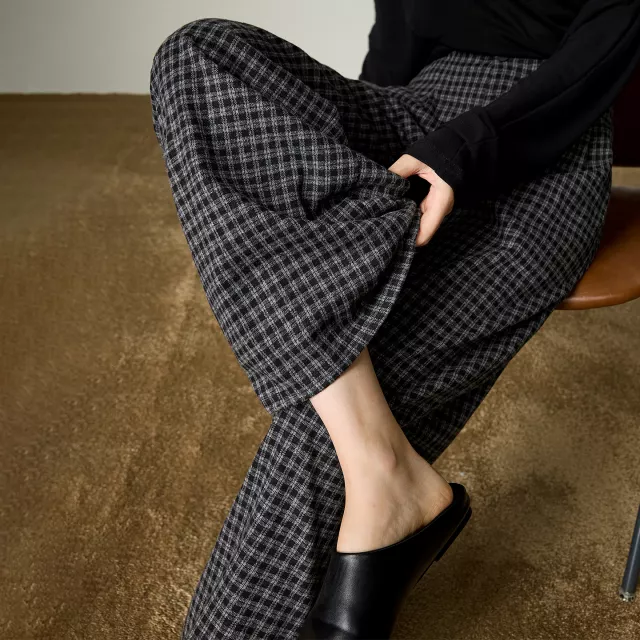 Refresh your winter style with pants that offer comfort, elegance, and versatility. Add these plaid wide-leg pants to your wardrobe and enjoy a cozy, flattering look all season long.