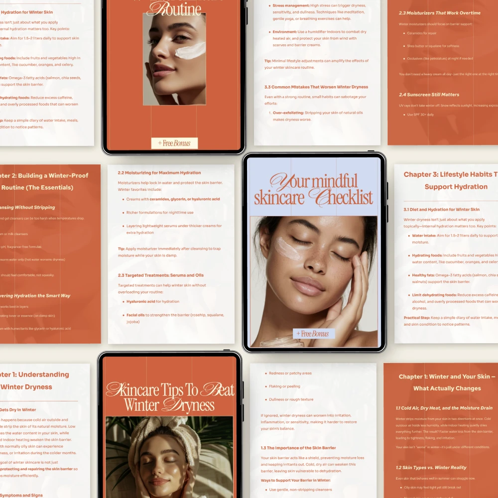 Unlike generic skincare downloads, this bundle combines education, mindfulness, and structure. Youโre not just learning what to doโyouโre guided on how to stay consistent and intentional with your winter skincare routine. The checklists and tips are designed to fit into real life, not perfection.