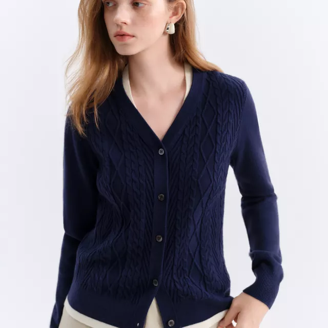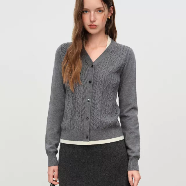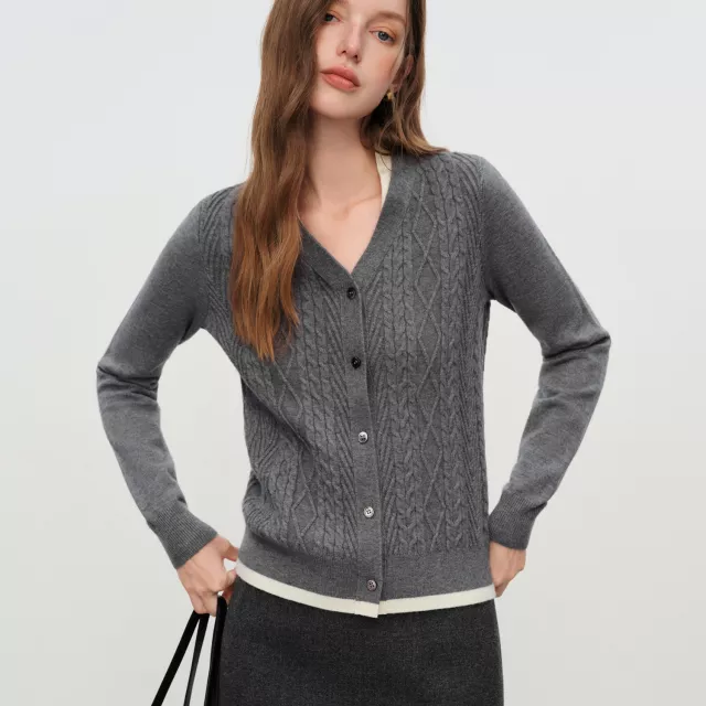Wrap yourself in comfort and style with this elegant V-neck cable-knit cardigan, designed to give you the trendy two-piece look without the extra bulk. Crafted with soft, medium-stretch knit fabric, it offers a naturally slim fit that flatters your silhouette while keeping you warm throughout chilly autumn and winter days. Its cozy texture, thick construction, and timeless geometric knit pattern make it a must-have for anyone who loves effortless fashion that looks polished with minimal effort.