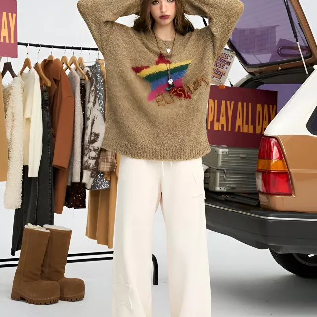 What truly sets these pants apart is their double-sided velvet texture combined with a relaxed wide-leg silhouette. They don’t just keep you warm; they elevate your everyday look with a soft, stylish finish. The lightweight but insulating fabric makes them comfortable to wear for long hours, while the subtle star detail adds a touch of personality without overpowering your outfit.