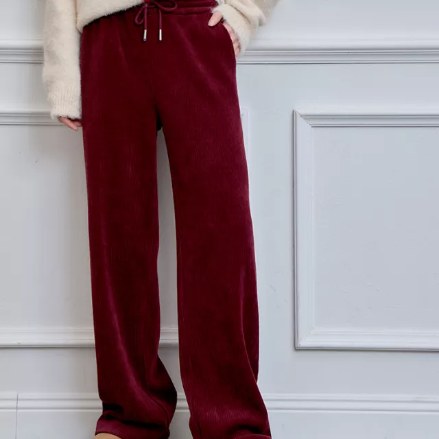 Step into ultimate comfort this cold season with these versatile winter wide-leg knit pants. Designed for women who love effortless style, they combine a relaxed silhouette with the soft feel of flannel-knit fabric. The straight, loose fit lets you move freely, while the mid-rise waist with a drawstring closure offers easy adjustability throughout your day.