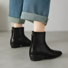 These Winter Women Boots are designed with both style and comfort in mind. The sleek, modern look features a classic square toe and a sturdy chunky heel, providing not only elegance but also support. The genuine leather upper, combined with the fleece-lined interior, ensures your feet stay cozy even on the coldest days. With their easy zip closure, you’ll be ready to step out in no time!