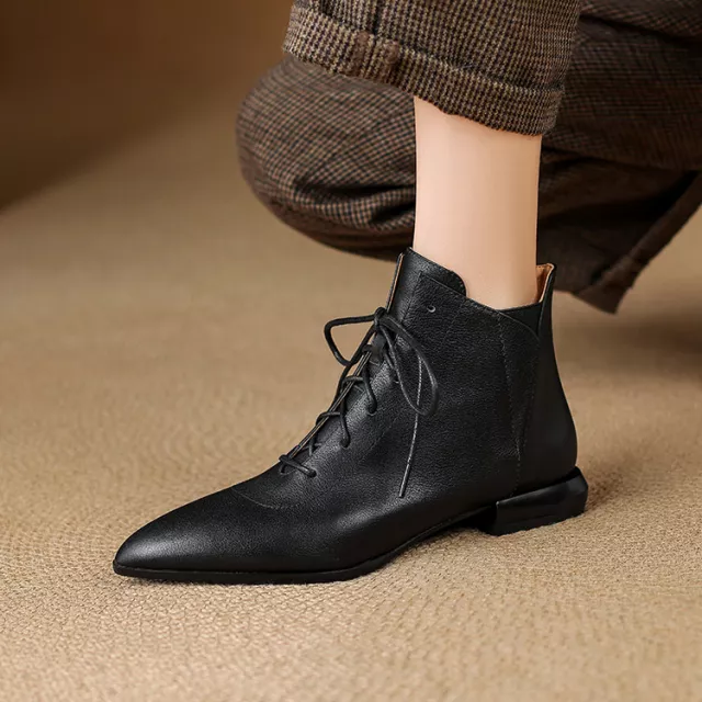 Stay warm, stylish, and comfortable with these genuine leather winter boots. Perfectly designed for the modern woman, these boots combine sleek, retro-inspired style with practical features that make them your go-to footwear for chilly days. Whether you’re heading out for a casual walk or need a reliable pair of boots for daily wear, these pointed-toe, lace-up ankle boots are your ultimate choice. The soft fleece lining and durable TPR sole offer the perfect balance of warmth and traction, keeping you comfortable in all types of winter weather.