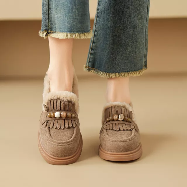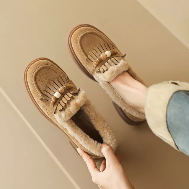 With their slip-on style, you can easily wear these loafers when you’re on the go. The addition of the playful tassels adds a subtle flair, making them perfect for dressing up or down depending on your outfit. Choose between chocolate, light brown, and khaki colors to find the perfect match for your winter wardrobe. These loafers are versatile enough to pair with jeans, skirts, or even casual dresses, making them a must-have for your seasonal collection.