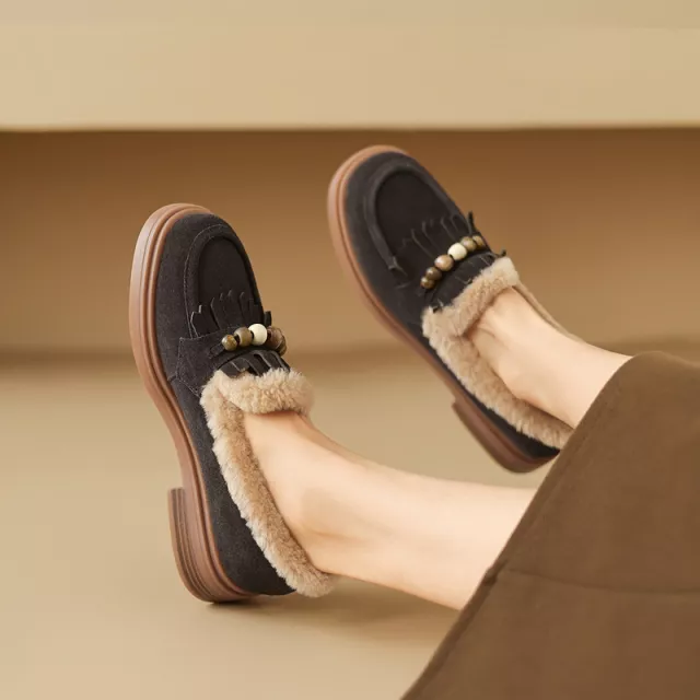 If you’re looking for a shoe that keeps you comfortable and stylish through the winter months, look no further. These loafers are designed for the modern woman who wants to make a statement while enjoying cozy, all-day wear. The slip-on design ensures ease of use, while the durable materials ensure they last season after season. Whether you’re heading to work, meeting friends, or just out for a stroll, these loafers will keep your feet warm and your style on point.