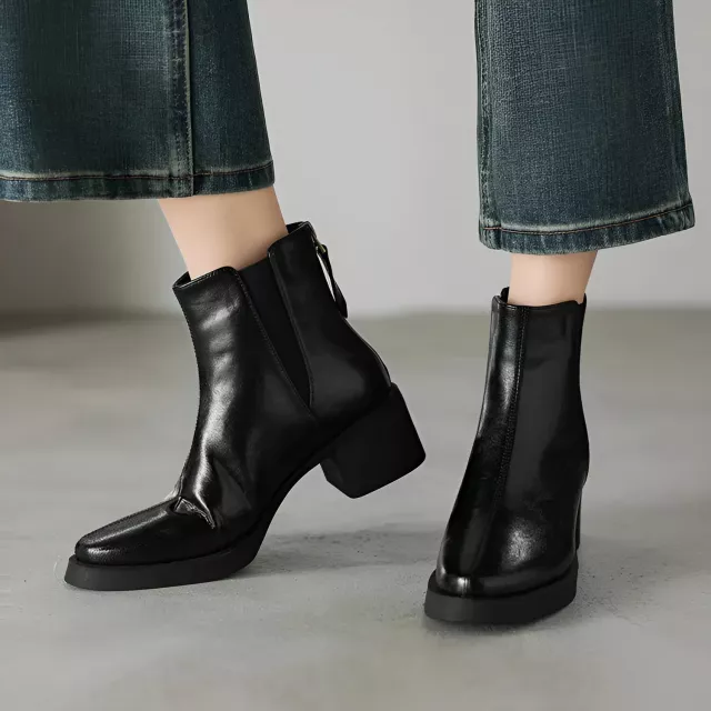 • Practical and Stylish – Zipper closure for convenience, chunky heel for stability, and a round toe for comfort.