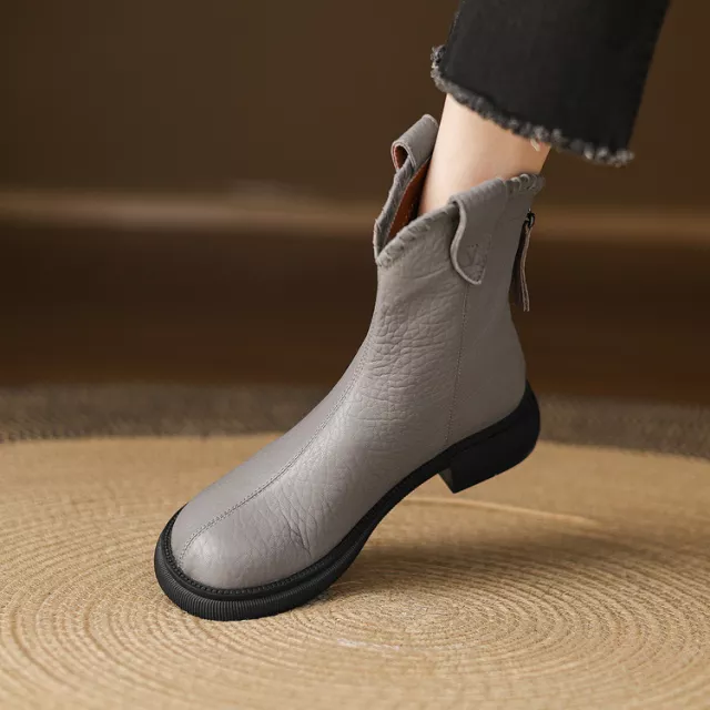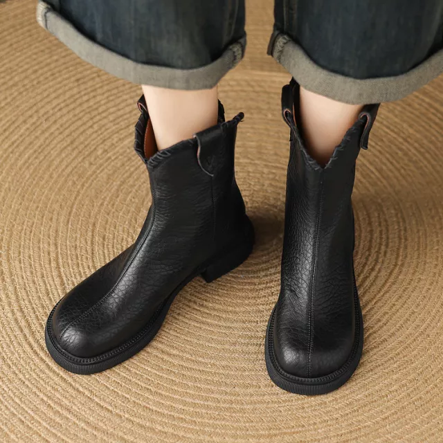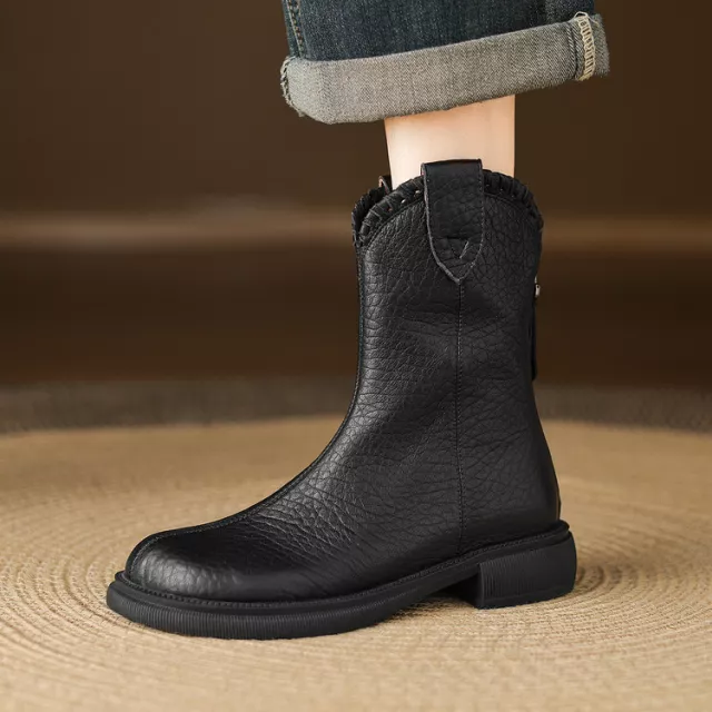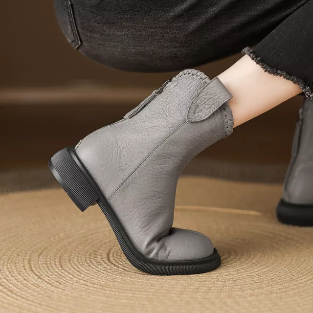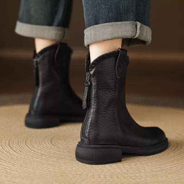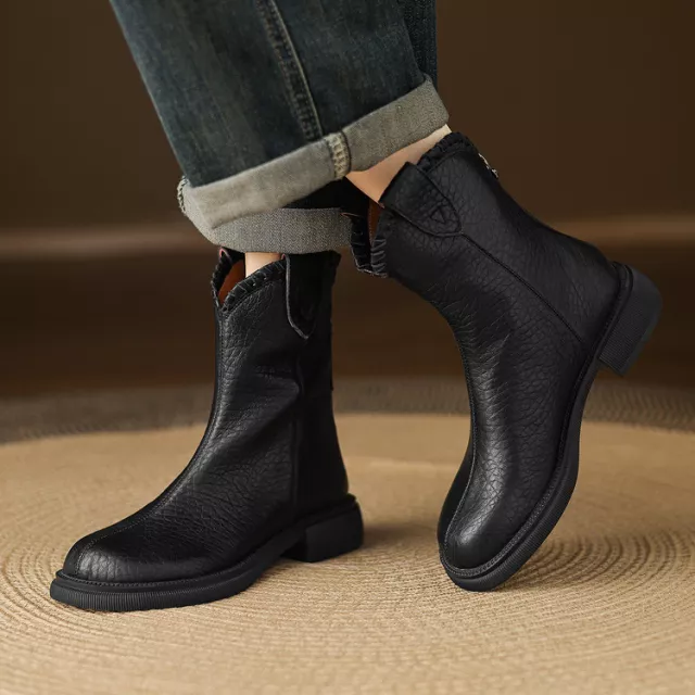 Winter Women’s Chunky Heel Leather Boots with Zipper