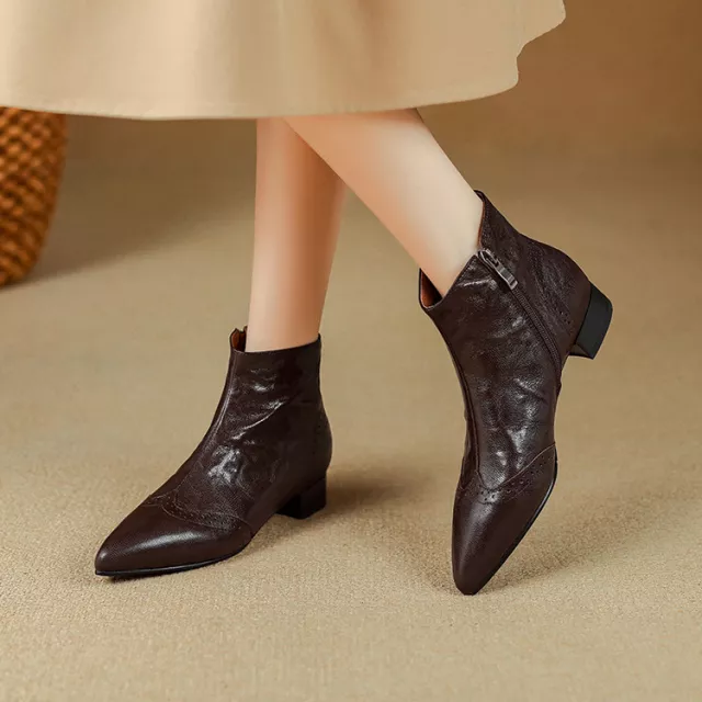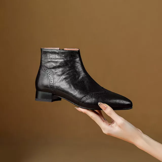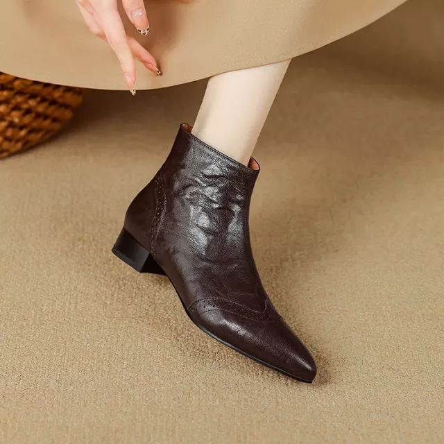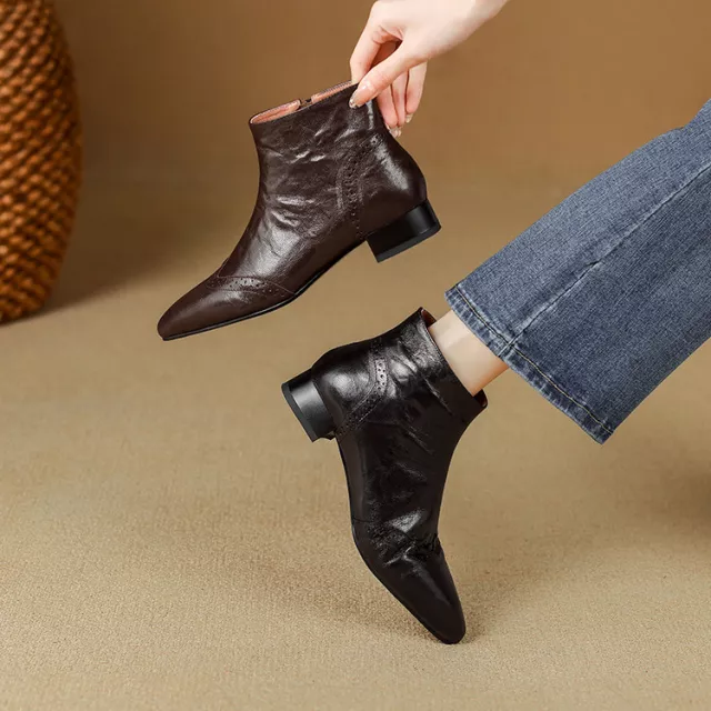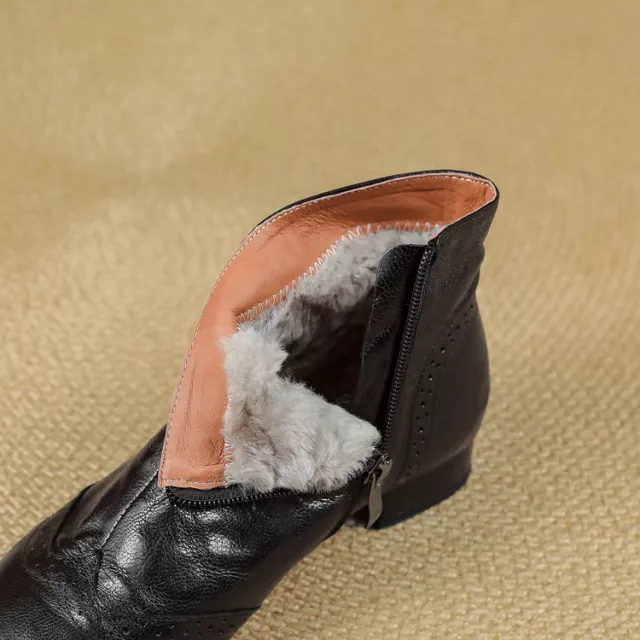 Winter Women’s Genuine Leather Ankle Boots with Wool Lining & Chunky Heel