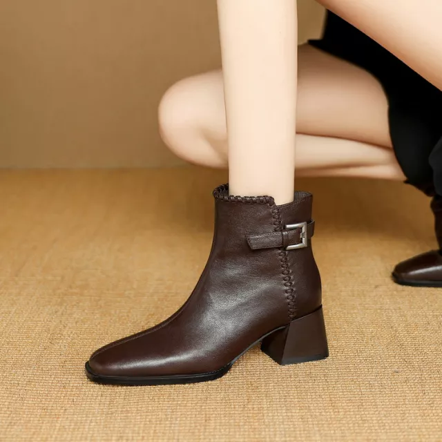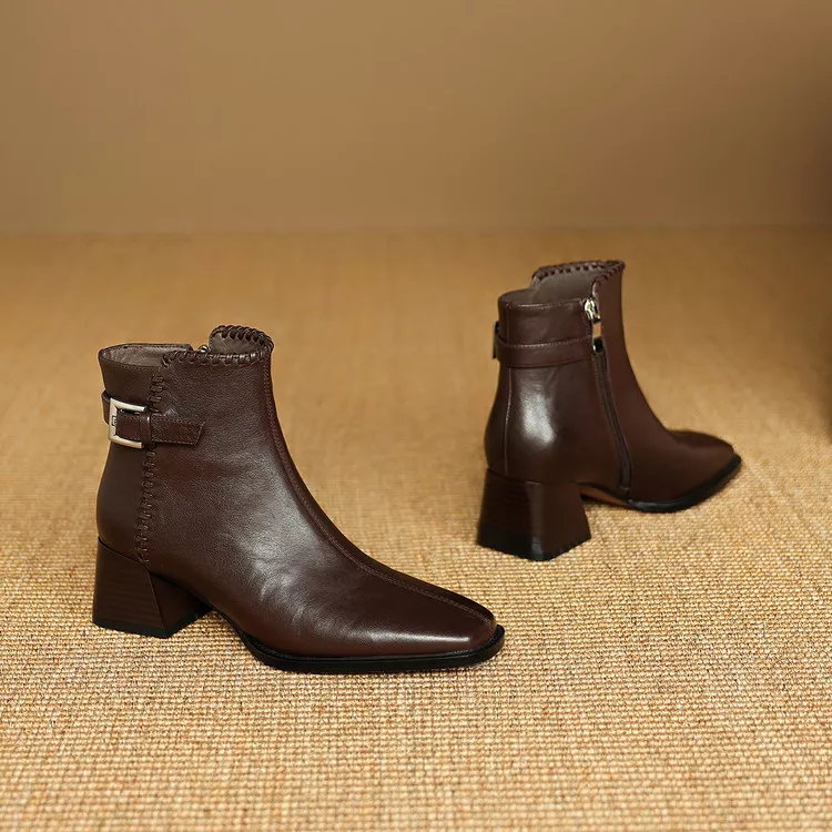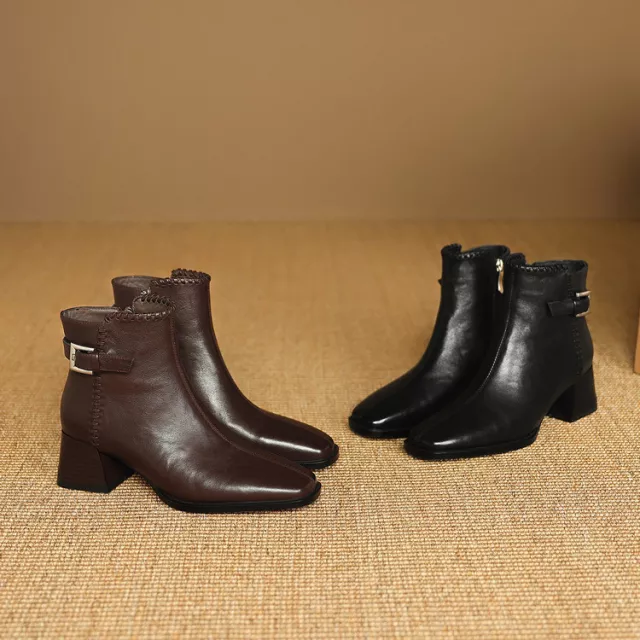 These boots are more than just a winter essential – they are a statement piece. The rich genuine leather not only gives them a timeless look but also ensures long-lasting durability. The cozy fleece lining will keep your feet warm and toasty, while the sturdy TPR sole provides slip-resistant traction, perfect for winter conditions. The square toe design adds a unique touch, while the chunky heel gives you just the right amount of height without sacrificing comfort. Ideal for daily wear, these boots will quickly become your go-to for winter fashion.