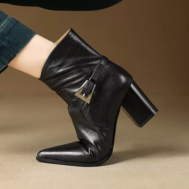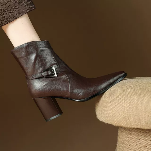 • Chic and Versatile: The combination of sleek leather, chunky heels, and stylish buckle detail makes these boots perfect for any occasion.