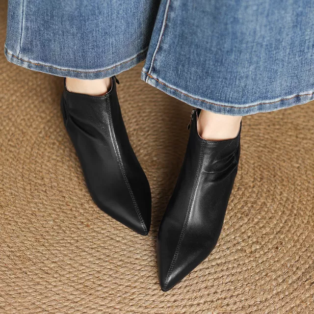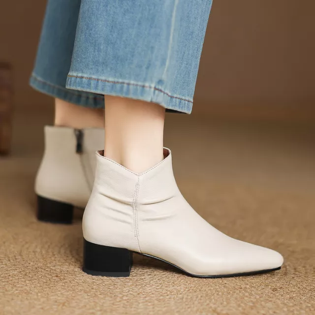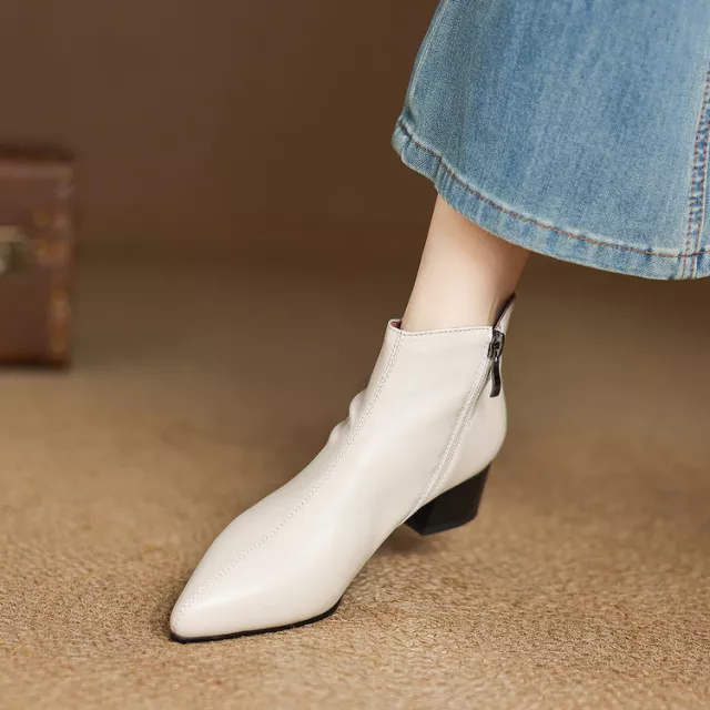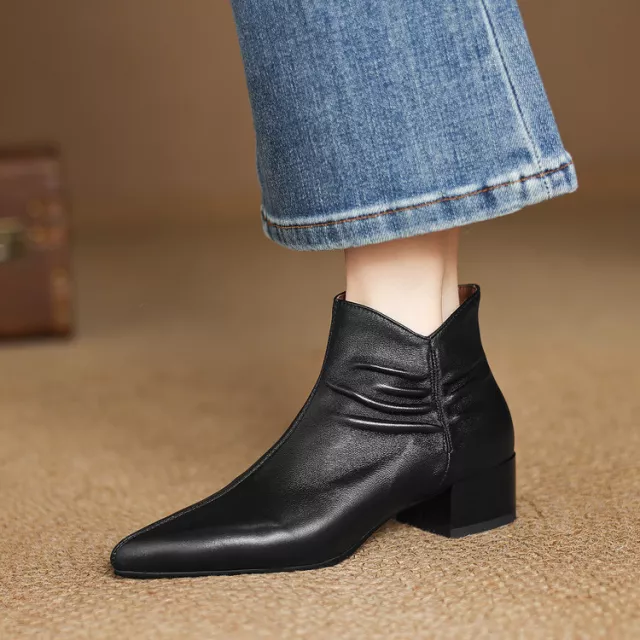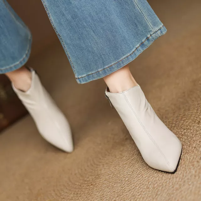 The pointed toe design and chunky square heel create a flattering silhouette, adding sophistication to any outfit. Available in two classic colors—beige and black—these boots are versatile enough to pair with jeans, skirts, or dresses. With a 4 cm heel and fleece-lined insoles, they provide just the right amount of lift without compromising on comfort.