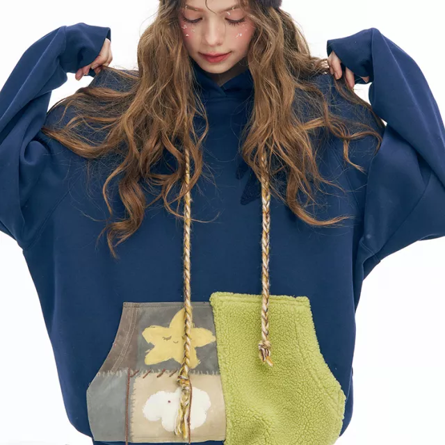 This piece stands out because it brings together comfort and creativity. The American retro Y2K aesthetic gives it a nostalgic charm, while the color-block pattern and character-inspired artwork make it more than just another hoodie—it’s an eye-catcher. Its loose silhouette flatters a range of body types, making it ideal for everyday wear, coffee runs, winter strolls, or relaxed indoor moments.
