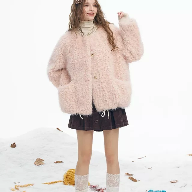 Winter Y2K Plush Single-Breasted Round Neck Coat for Women