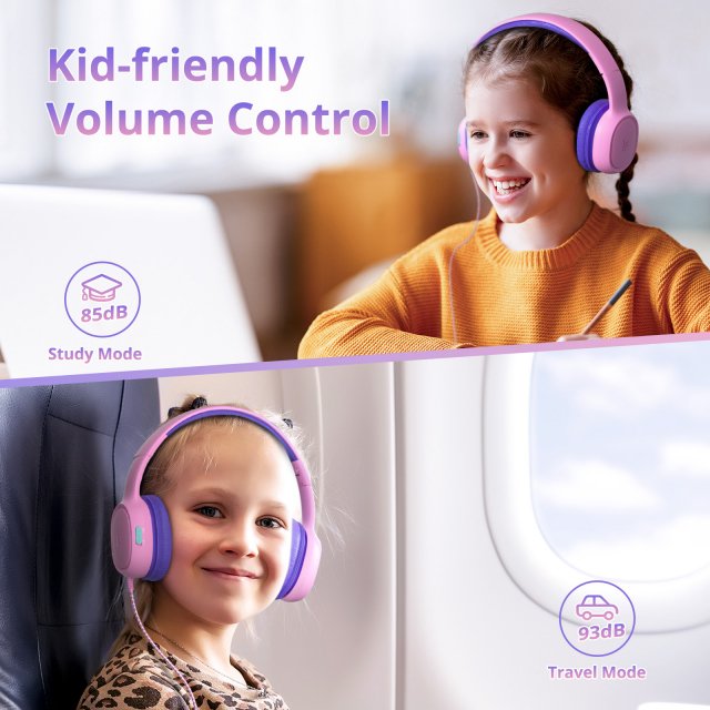 • Safe Volume Control: Protect children’s hearing with 85dB and 93dB volume limits.