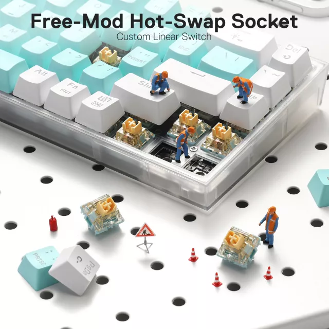 Upgrade and customize with ease thanks to hot-swappable sockets that support almost all 3-pin and 5-pin mechanical switches. Swap switches without soldering, explore new feels, and keep your setup fresh without complicated tools or technical knowledge. The exclusive socket design keeps switches stable and wobble-free for a smoother experience.