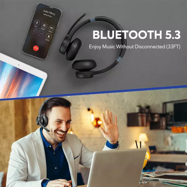 Enjoy up to 45 hours of talk time and an incredible 400 hours of standby time on a single charge. The headset is lightweight and designed with soft memory foam ear cushions and an adjustable headband that fits comfortably for long hours of use, making it perfect for daily work, long conference calls, or even extended gaming sessions.