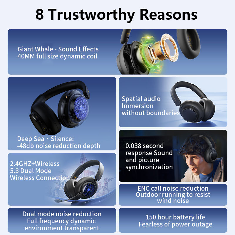 • Extended Battery Life: Play for up to 150 hours in normal mode, and up to 120 hours with noise cancellation activated, keeping you immersed without worrying about recharging.