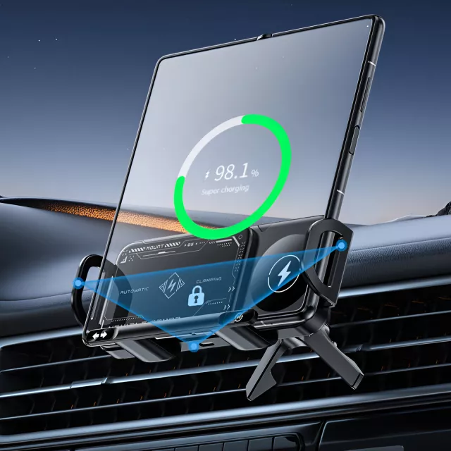Upgrade your driving experience with this Wireless Charging Phone Holder for Car. Designed with a smart double coil system, it delivers fast and efficient 15W charging to keep your phone ready for calls, navigation, and music wherever the road takes you. Its sleek, durable build combines strength and elegance, making it the perfect in-car companion for modern drivers.