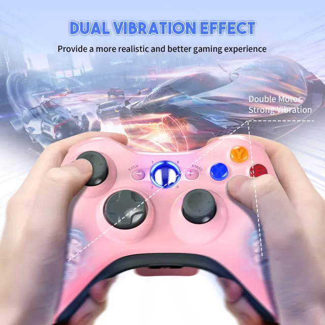 Wireless Gaming Controller for Xbox 360 & PC with Dual Vibration