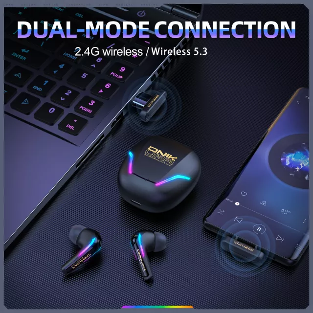 Experience the ultimate in wireless audio with these high-performance gaming earbuds. Built for gamers who crave precision and immersion, these earbuds combine cutting-edge technology with comfort and style. With Bluetooth 5.3, you’ll enjoy a strong, stable connection and ultra-low latency for smooth, lag-free gameplay. Designed for versatility, they feature three gaming modes to match your play style, delivering crystal-clear sound every time.