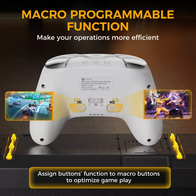 This controller doesn’t just look premium—it delivers premium performance. With NFC Amiibo support, you can unlock special in-game content instantly. The auto-fire function gives you an edge in fast-paced battles, while the non-linear trigger buttons provide accurate control for racing, shooting, and adventure games. A long-lasting rechargeable battery keeps you in the action, and when it’s time to power up, simply place it on the included charging dock for a quick, hassle-free charge.