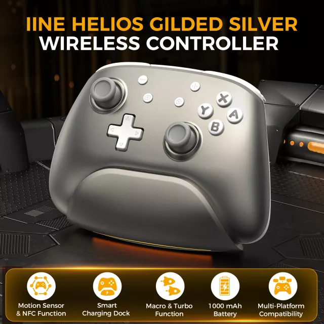 Wireless Silver Gaming Controller with Charging Dock for Switch, PC & iPad