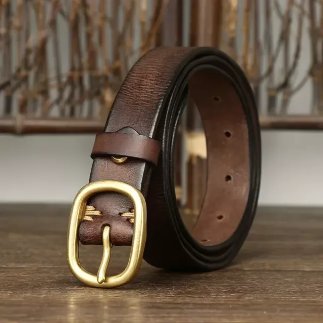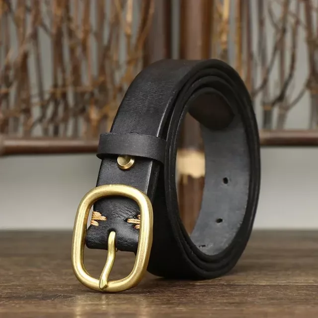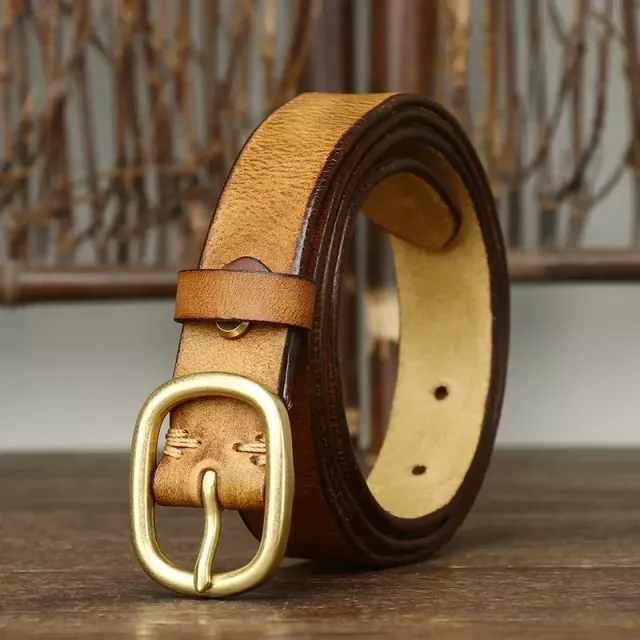 Women’s 2.8CM Genuine Leather Belt with Brass Buckle
