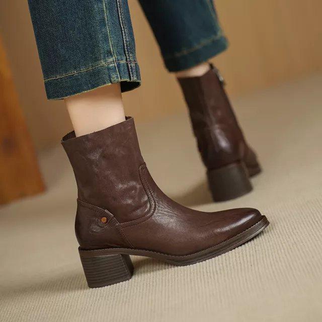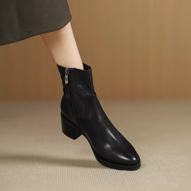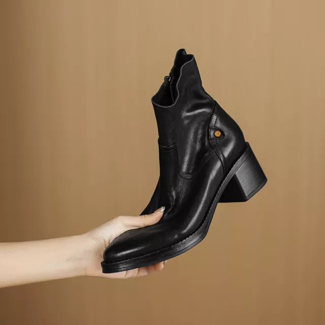 Upgrade your shoe collection with these stunning women’s ankle boots, designed to blend style, comfort, and durability. Crafted from genuine leather, these boots feature a round toe and a chunky square heel, offering a perfect mix of retro charm and modern elegance. The sleek zipper design ensures easy wear while adding a stylish touch, making them a must-have for any wardrobe.