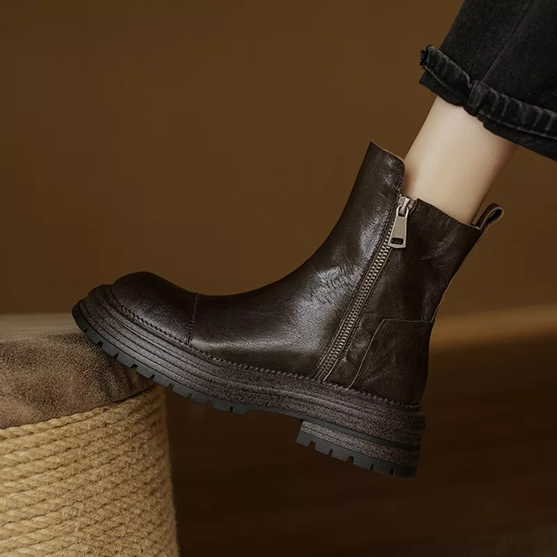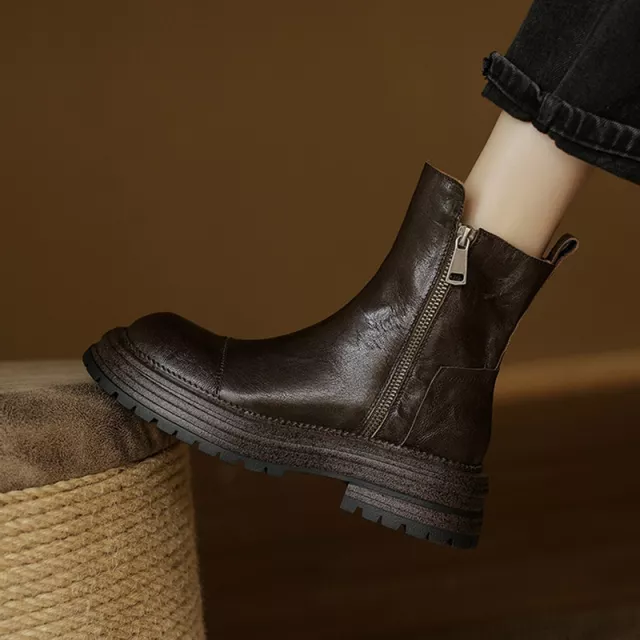 These boots are all about balance: comfort, durability, and style. The soft split leather upper gives a premium feel, while the fleece-lined interior helps keep your feet warm during cool spring and autumn days. The medium chunky heel adds subtle height without sacrificing stability, making them ideal for long hours on your feet. A side zipper allows for quick and easy wear, so you can slip them on and go.