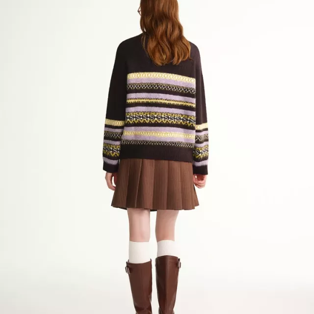 Women’s Autumn Winter Retro Knit Sweater with Folk Floral Pattern