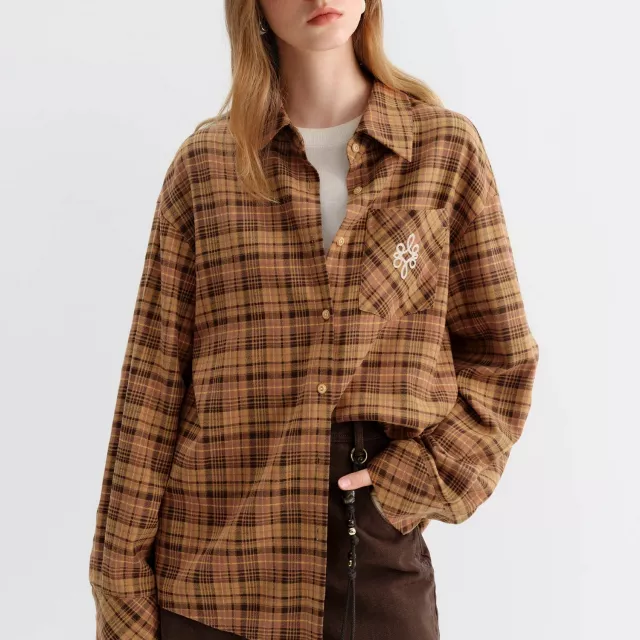 This Brushed Plaid Shirt isn’t just another flannel – it’s a statement piece for your autumn and winter wardrobe. The thick, brushed fabric ensures you’re both stylish and snug, while the retro embroidery sets it apart from other plaid shirts. Its non-stretch, regular fit provides a relaxed and flattering shape, perfect for layering over tees or under jackets. Whether you’re going for a casual lunch or a weekend outing, this shirt brings effortless style to any occasion.