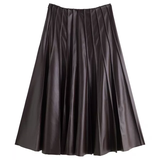 Step into effortless style with this Women’s Cherry Gloss PU Leather A-Line Pleated Midi Skirt. Designed for a flattering empire waist and a mid-calf length of 22.8 to 27 inches, this skirt is perfect for adding a touch of sophistication to your winter wardrobe. The 3D pleated umbrella silhouette flows gracefully with every step, creating a feminine and modern look that suits a variety of occasions.
