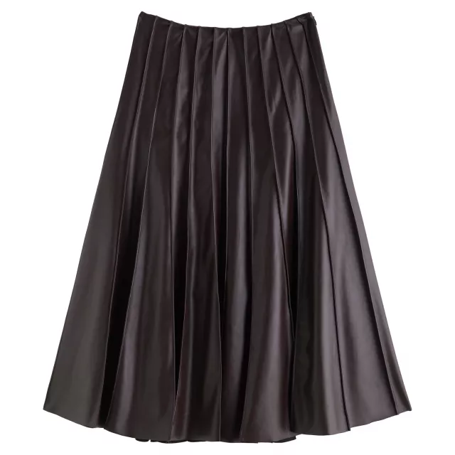 This skirt is more than just a stylish piece—it’s a wardrobe essential that enhances your confidence and adds charm to every outfit. Its high-quality PU leather coating ensures a modern, glossy look that stands out in any setting. The 3D pleats create movement and volume, making it perfect for both casual gatherings and more formal occasions. The empire waist design flatters a range of body types, highlighting your waist while allowing a comfortable, flowing fit.