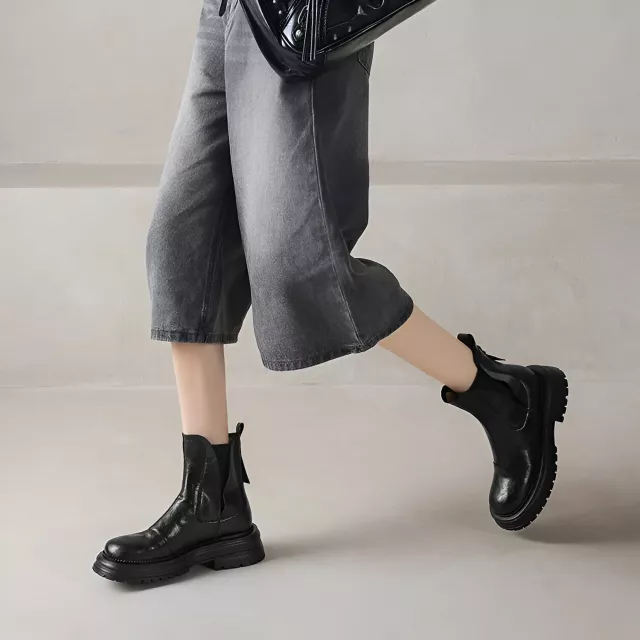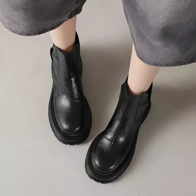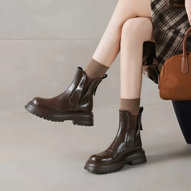 These boots combine classic Chelsea style with modern comfort. The round toe design gives your feet natural room to move, while the side zipper makes them easy to slip on and off. The solid color finish in brown or black makes them easy to match with jeans, dresses, or skirts. The rubber sole adds grip and stability so you can walk confidently on different surfaces.