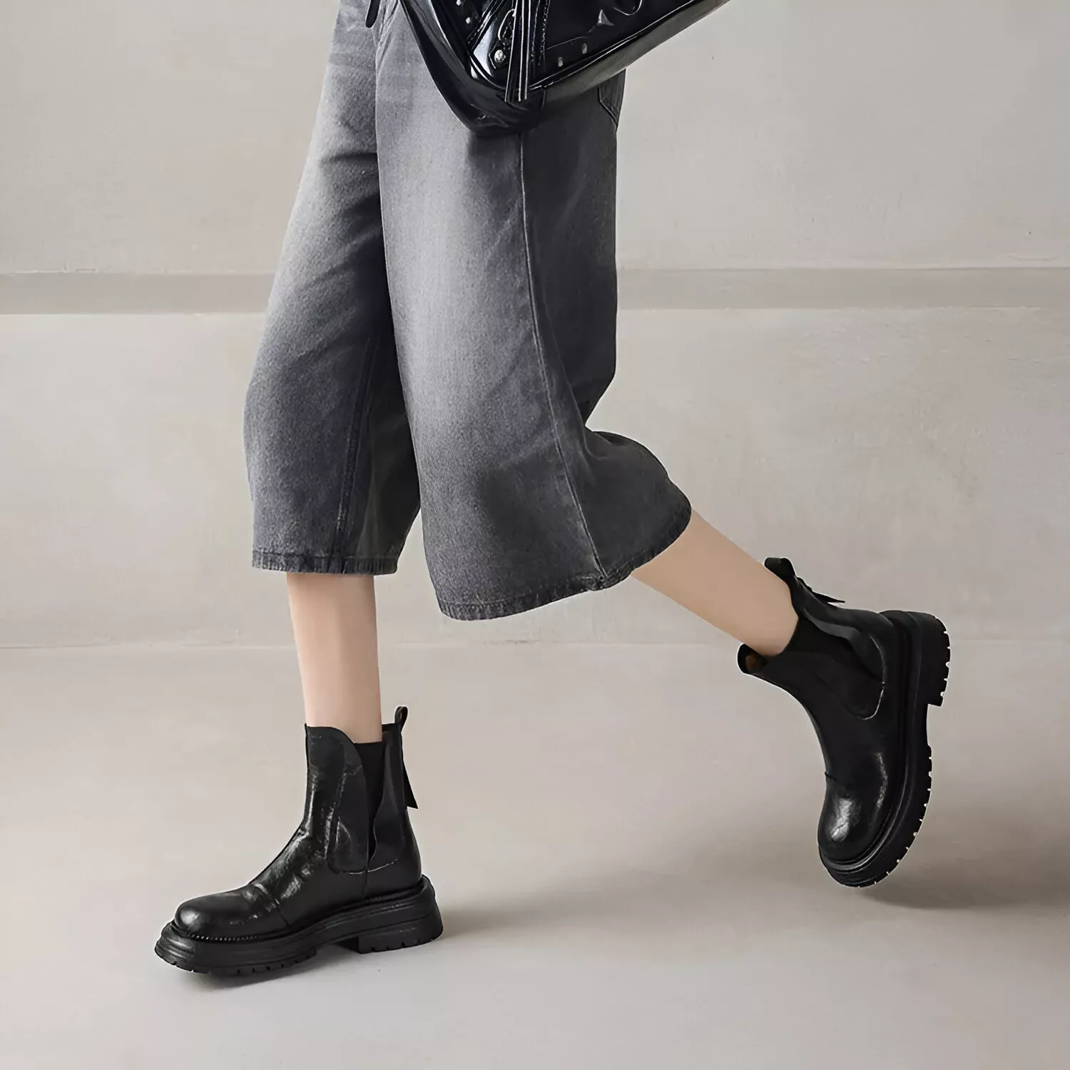 Women’s Chunky Heel Chelsea Boots – Split Leather Zip Platform Style