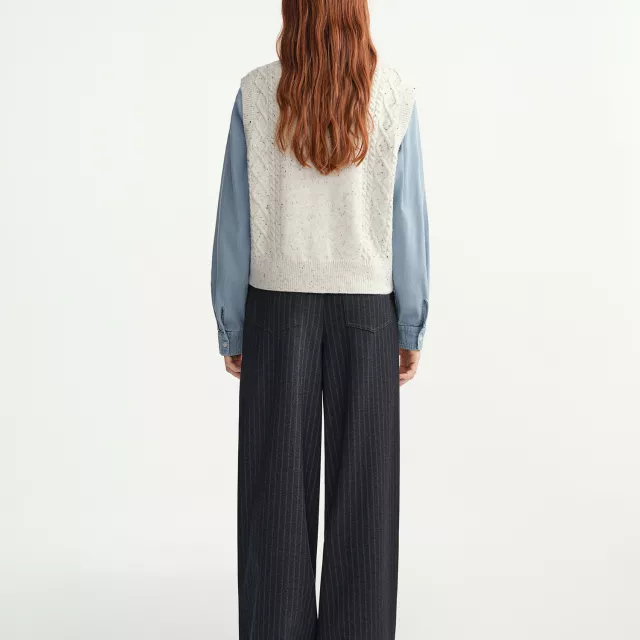 This knit vest is more than just outerwear—it’s a statement piece. Its bold, colorful dots instantly brighten up neutral ensembles, while the V-neck design elongates your neckline for a flattering effect. Lightweight yet warm, it’s perfect for layering under jackets or wearing alone with your favorite top. The vest’s timeless design makes it a winter essential that will remain a wardrobe favorite season after season.