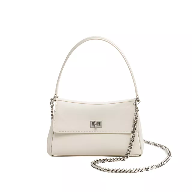This handbag showcases a soft yet durable genuine cow leather exterior paired with a matching leather lining for a luxurious feel inside and out. Measuring just the right size to carry your essentials, it features a secure hasp closure and an interior slot pocket to keep your belongings organized. The single shoulder chain strap offers a comfortable fit while accentuating your outfit with a trendy metallic touch.
