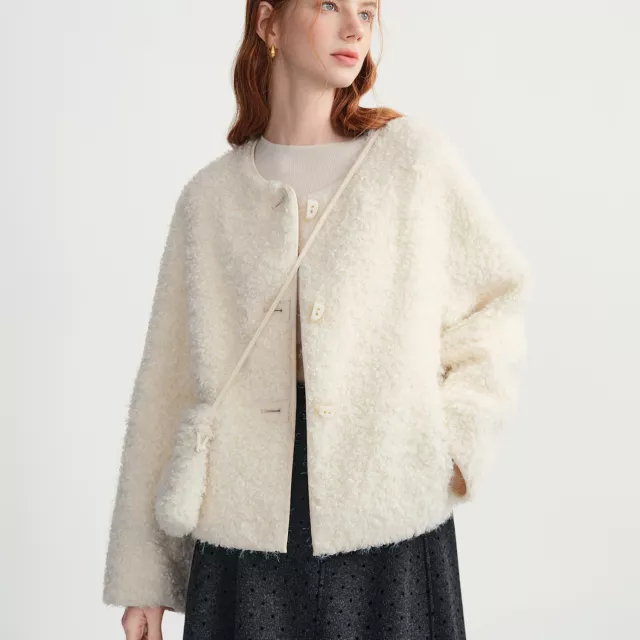 This jacket stands out thanks to its eco-conscious design and premium texture. Made from 100% polyester with a soft faux shearling lining, it feels luxurious while staying completely animal-friendly. The structured slim fit flatters your shape without feeling restrictive, and the thick fabric keeps you warm when temperatures drop. Its clean solid color and minimal design make it easy to dress up or down, so you can wear it all season long.