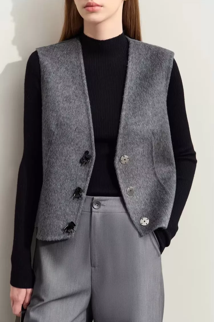 Whether you’re dressing for work or heading out for a cozy weekend brunch, this vest is an easy way to elevate your ensemble. It’s best used during the autumn and winter seasons when you need a warm yet lightweight layer that adds sophistication without bulk.